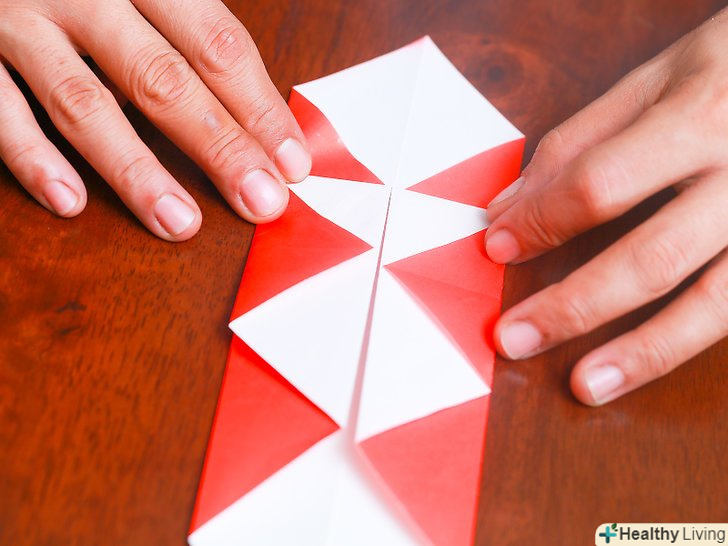 Зігніть другий з кінця ромб навпіл по горизонталі. підігніть нижню частину під верхню, а не навпаки. Даний прийом називається згин назовні. [12]