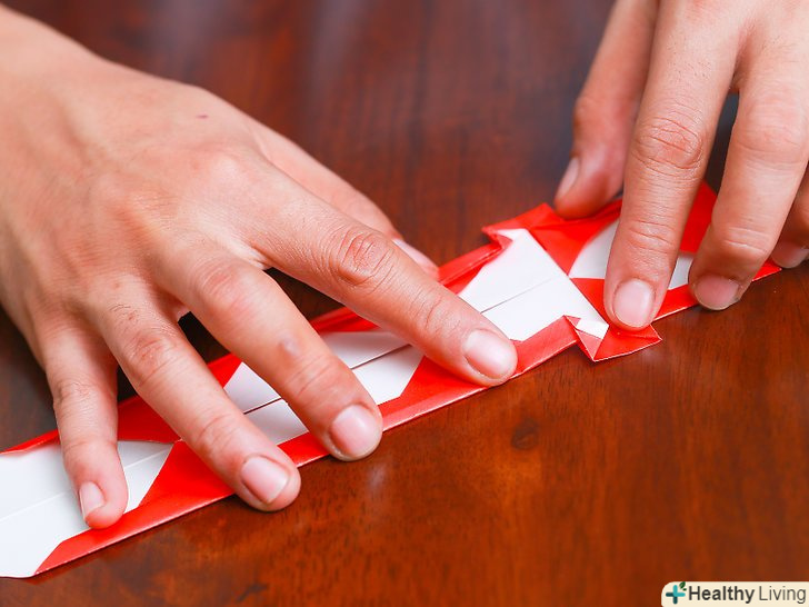 Загніть бічні сторони до центру. зробіть вертикальну складку і загніть бічні сторони до центральної лінії. Таким чином, ви проведете звуження попередньої фігури. [10]- Через згинання сторін, краї бічних трикутників повинні перевернутися.