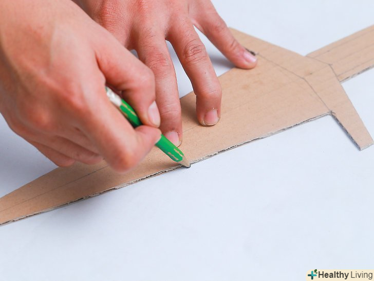 Намалюйте кинджал на аркуші щільного паперу або картону. для наочності скористайтеся лінійкою і малюнками кинджалів. Візьміть один суцільний шматок, але він повинен бути досить товстим, щоб вирізані шматки не було важко вирівняти.