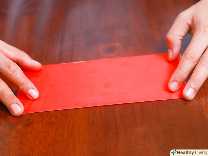 Складіть лист по горизонталі. складіть верхні кути з нижніми, щоб посередині з'явилася лінія згину. Розгорніть лист. [2]