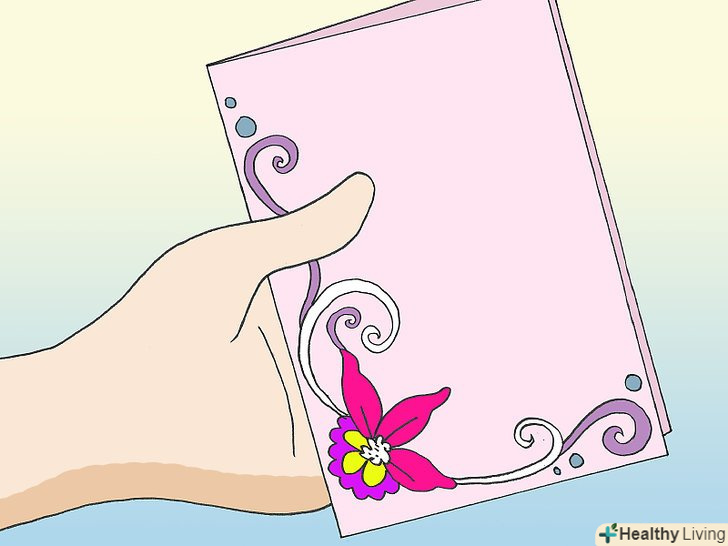 Подумайте про те, як повинна виглядати ваша листівка. завдання, по правді кажучи, не з легких-або у вас буде купа ідей, або жодної. Однак ніщо не заважає вам почерпнути натхнення.- Будьте креативні. Хочете знати, як показати свою подяку? Це може бути вирізана з кольорового паперу форма вашої долоні, штампик з яблука або картоплі [21] , об'ємна листівка - ви обмежені лише своєю фантазією!