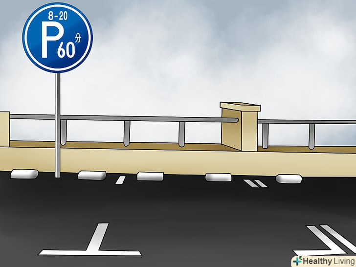 Паркуйтесь у відведених для цього місцях.Припарковуйтеся тільки в місцях, призначених для паркування. Не паркуйтеся під знаком «Парковка заборонена».- Знак "Парковка заборонена" виглядає як синій коло з червоною межею. Його по діагоналі перетинає червона лінія. Якщо замість однієї перекреслює лінії ви побачите червоний хрест, то це знак «Парковка і зупинка заборонена».