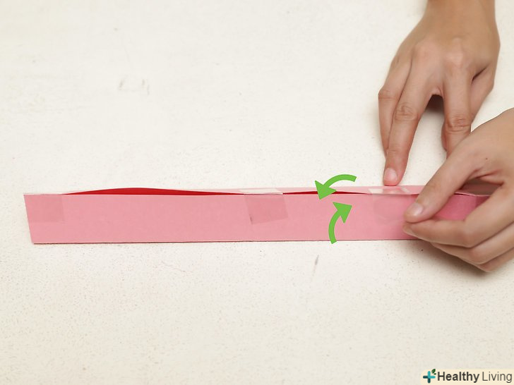 З'єднайте обидві частини ноутбука. Тепер, коли екран і клавіатура готові, вам треба з'єднати їх разом. Візьміть обидві частини і складіть довгою стороною один до одного. Переконайтеся, що і екран, і клавіатура повернені лицьовою стороною вгору. Проклейте місце стику смужкою прозорого скотча. Переверніть склеєні листи і наклейте ще одну смужку скотча на те ж місце, але зі зворотного боку. [10]