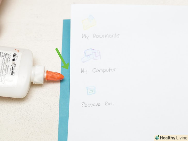 Зробіть робочий стіл. тепер, коли у вас є основа, потрібно зробити екран з робочим столом. Візьміть один з аркушів білого паперу і прикладіть його до аркуша, на якому намальований логотип. Якщо вони однакового розміру, відміряйте і отчертите по 2,5 см з кожного боку Білого листа, а потім обріжте їх. Потім намалюйте або приклейте картинки, які будуть зображувати робочий стіл.