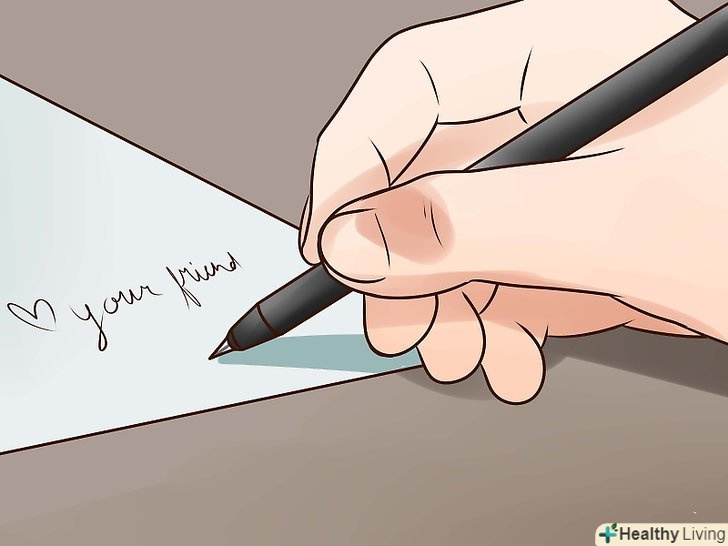Напишіть текст у листівці. кілька особистих слів і ваш підпис зіграють у вашій листівці роль "вишеньки на торті". Проста пара рядків здатна створити диво! Почніть з імені адресата, потім напишіть одне або два речення з побажаннями одужання. Підпишіться в кінці, і все готово.