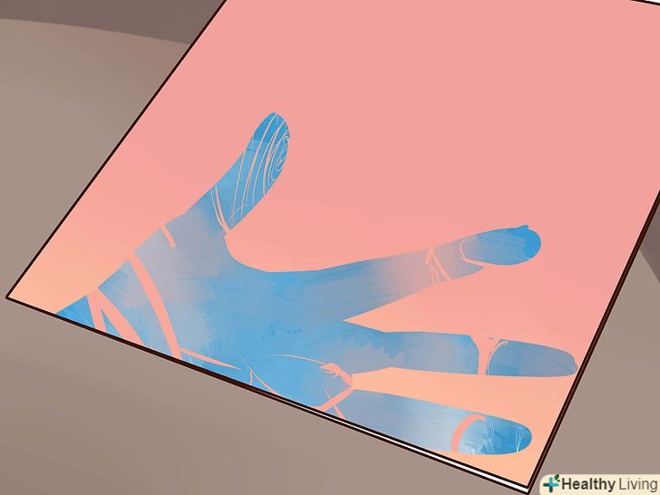 Притисніть долоню і пальці до фарби. постарайтеся рівномірно покрити фарбою всю кисть руки (крім тильного боку).