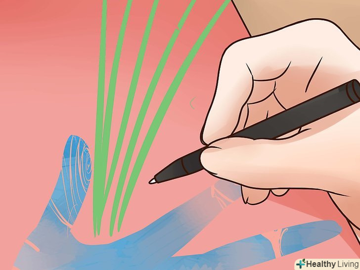 Намалюйте стебла квітів, що йдуть до відбитка руки. Маркером будь-якого кольору (але найкраще зеленим) намалюйте стебла квітів. Вони повинні закінчуватися на самій межі відбитка. Постарайтеся створити враження, ніби рука тримає букет. По іншу сторону руки намалюйте кінчики стебел.