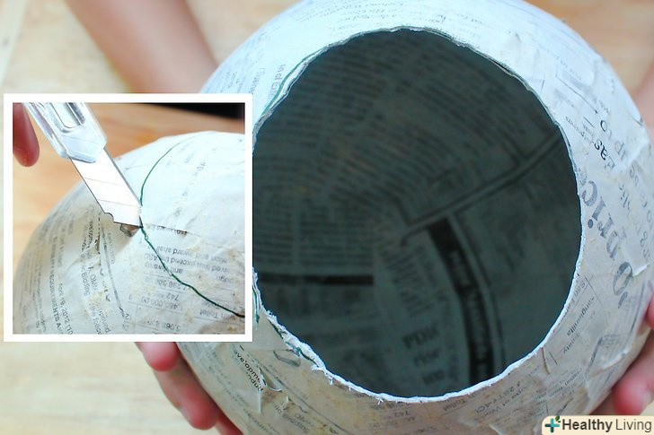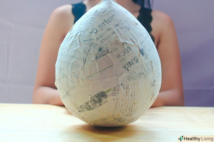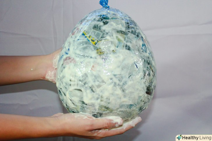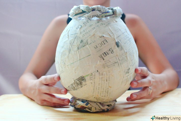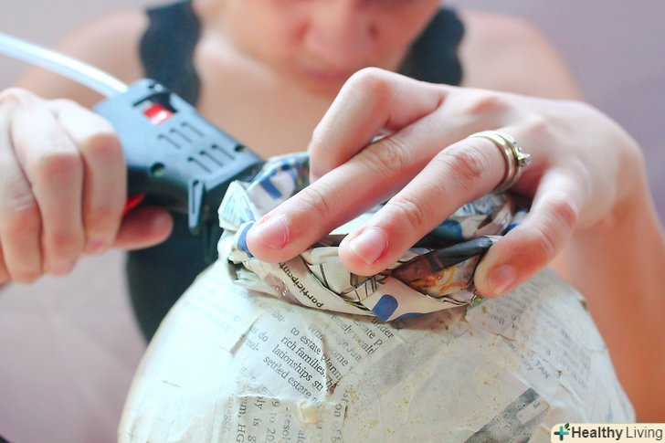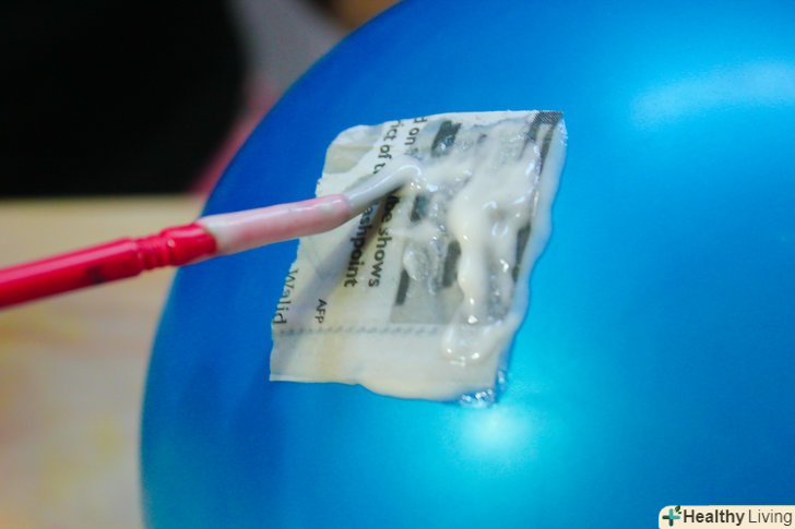 Тепер приклеюємо шматочки газети до кульки за допомогою клею. не залишайте незаповнених ділянок.