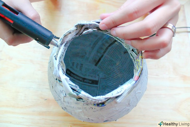 Закрутіть шматок газети до розміру пончика і прикріпіть до нижньої частини майбутньої вази.
