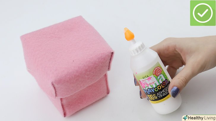 Приклейте трикутні вирізи до внутрішньої поверхні стінок коробки. Отже, у вас в руках дві половини коробки, які можна легко поєднати. Можна склеїти їх разом за допомогою будь-якого клею. Просто нанесіть невелику кількість клею на верхню внутрішню поверхню стінок кришки, надівши її потім на дно коробки.- Зачекайте кілька хвилин, поки клей висохне, притиснувши краї бічних сторін коробки. Потім надіньте кришку коробки на її підставу і помилуйтеся результатами своєї роботи.