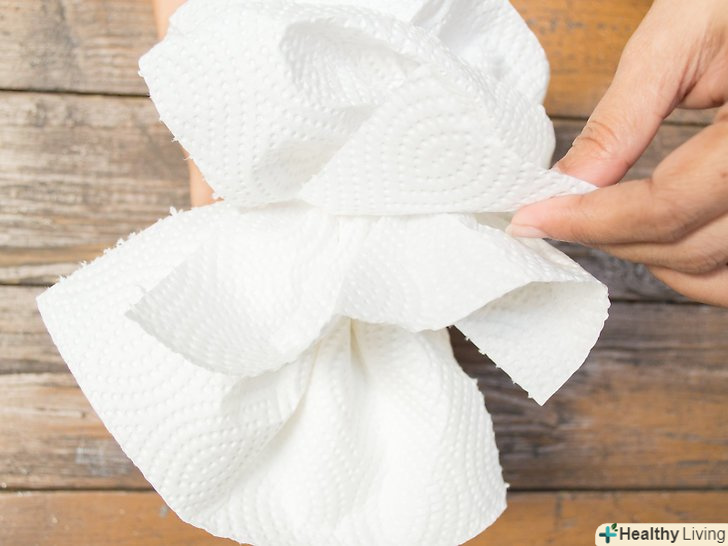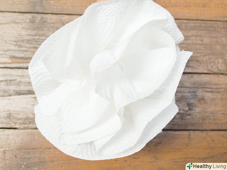 Підготуйте основу своєї квітки. візьміть від двох до шести листочків туалетного паперу (в залежності від того, наскільки пишним повинен бути квітка) і складіть їх стопкою. Вирівняйте листочки і зберіть їх посередині, створивши якусь подобу бантика. Візьміть йоржик і щільно двічі обмотайте їм папір по центру. Він замінить ваші пальці, які до цього надавали папері форму бантика. [1]