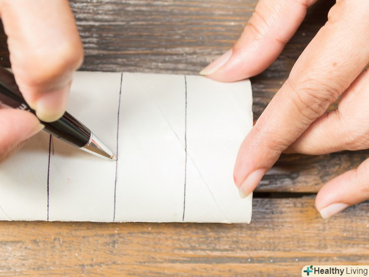 Розплющте і розмітьте картонні трубочки. Візьміть картонні трубочки і розплющте їх до плоского стану. Вони будуть трохи відновлювати свою форму після того, як ви їх відпустите. Вам необхідно зробити лише так, щоб на трубочках залишилися два помітних згину. Після даної операції розмітьте трубочки таким чином, щоб поділити їх на поперечні чверті. [6]