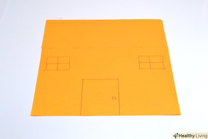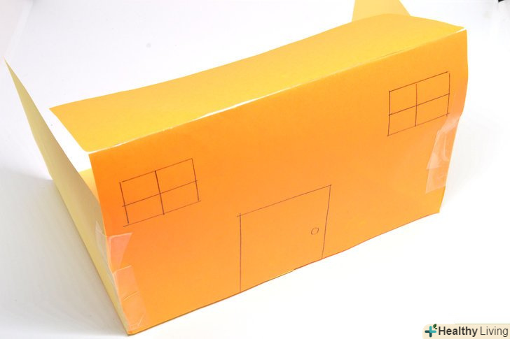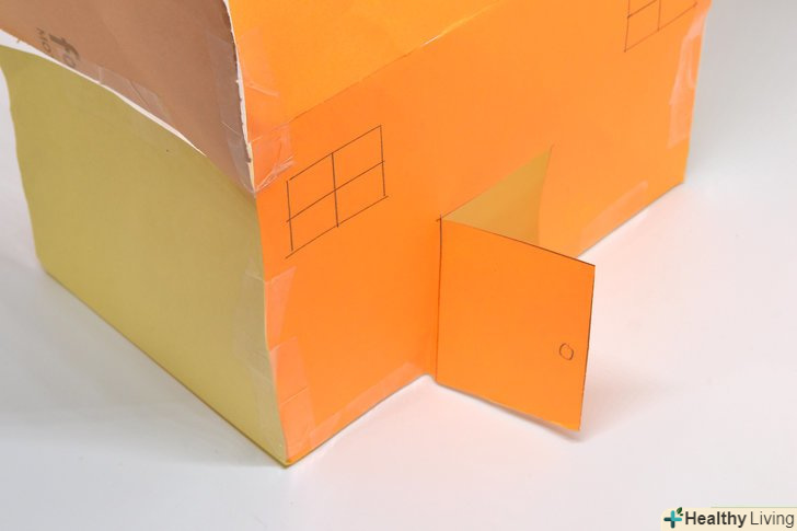 Додайте двері. покладіть деталь B таким чином, щоб смуга скотча виявилася вгорі. У нижній більшій частині деталі B намалюйте двері. Також ви можете намалювати кілька вікон і горщиків з квітами або будь-які інші деталі оформлення передньої частини будинку. [5]