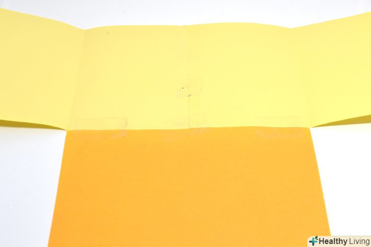 Склейте між собою скотчем два аркуші паперу. вам необхідно склеїти два аркуші паперу короткими сторонами. Почніть з того, що складіть ці два листи навпіл ("бутербродом"). Обов'язково добре промніте згини. Потім розкладіть листи [4] і склейте їх між собою скотчем. Ви повинні склеїти ті сторони, які йдуть паралельно зробленим до цього згинів. Позначте склеєні листи буквою А і відкладіть їх в сторону.