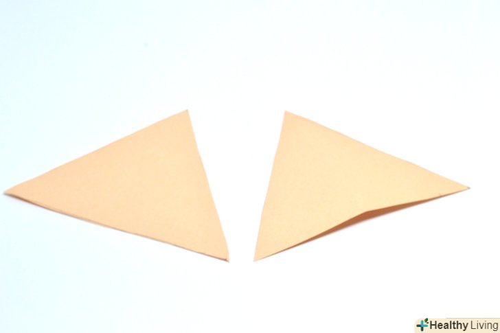 Намалюйте на окремому аркуші паперу два великих рівнобедрених трикутника. у рівнобедреного трикутника дві бічні сторони мають однакову довжину. [8] потім виріжте ці трикутники. Вони стануть боковинами даху. Якщо хочете, також намалюйте або наклейте на них вікна горища.