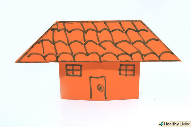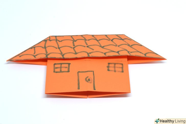 Завершіть оформлення будиночка. переверніть папір на іншу сторону. Намалюйте на будиночку двері, вікно та інші деталі, які захочете. Все готово!