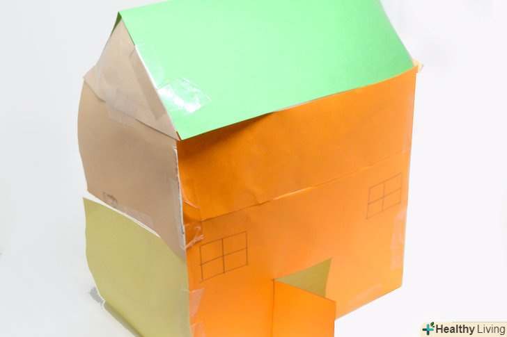 Підніміть стіни будинку. підніміть бічні стіни будинку і з'єднайте їх з бічними сторонами передньої стіни. Склейте стіни між собою скотчем. Не переживайте, якщо бічні стіни виявляться занадто короткими. Ви скоро це виправите. [7]