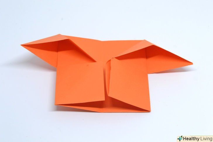 Зробіть Додаткові згини на папері. складіть квадрат навпіл, притягнувши ліву сторону до правої. Потім розгорніть його назад. Далі складіть квадрат навпіл, притягнувши верхню сторону до нижньої. Добре промніть згин і знову розгорніть папір. На квадраті має з'явитися два нових згину, що формують собою плюс. [2]