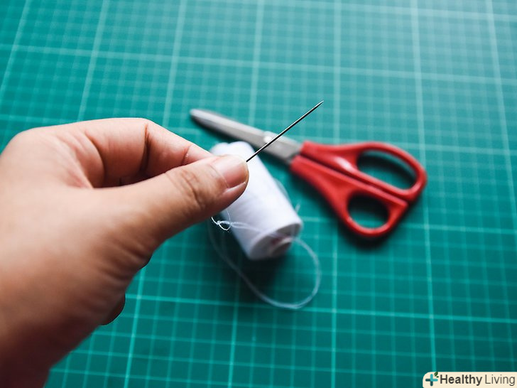 Заправте голку вощеною ниткою. відріжте близько 60 см вощеної нитки. Колірні варіації вощеної нитки досить обмежені, але біла або чорна нитка підійде для більшості випадків. Всуньте нитку в голку для пряжі або в іншу велику голку з великим вушком. [8]- Знайти вощені нитки можна в магазині товарів для рукоділля.