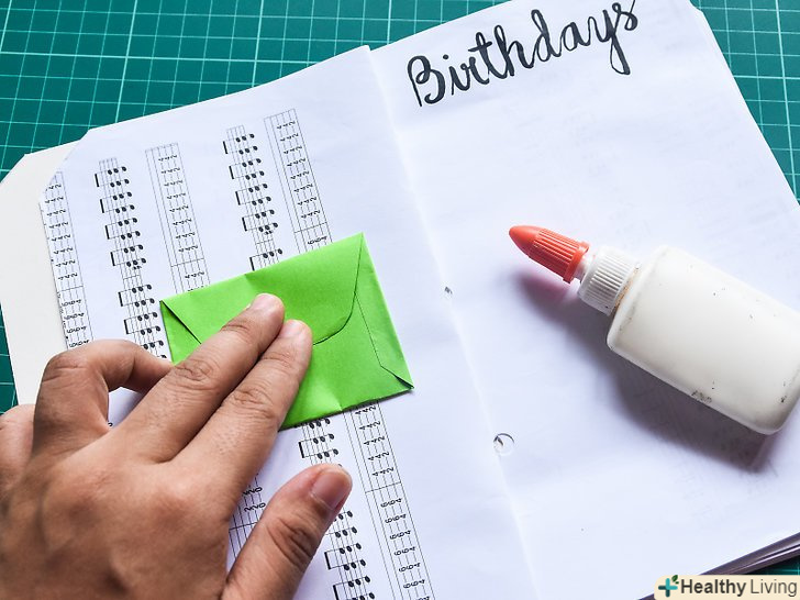 Приклейте до сторінок мініатюрні конверти, які будуть виконувати роль кишеньок. це не обов'язково, але так ви зможете зробити свою книгу більш місткою. Конверти можна виготовити самостійно, підготувавши прямокутники паперу, підвернувши їх по трьох сторонах і наклеївши на сторінку. [14]- Найкраще для даного завдання використовувати клеїть олівець. Але якщо у вас його Немає, Візьміть двосторонній скотч.