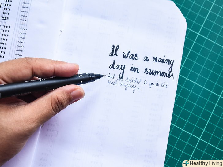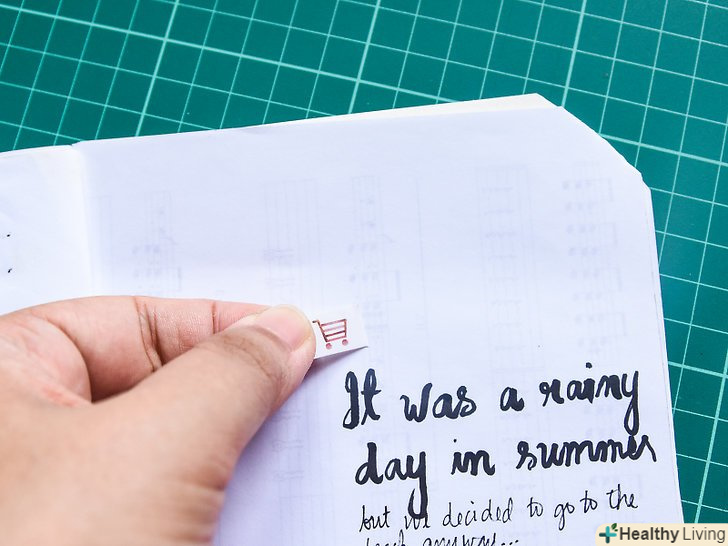 Зробіть вибір між рукописним і друкованим текстом. якщо для внутрішніх сторінок книги ви використовували однотонний папір (будь то тонований або просто папір для принтерів), то свої історії можна писати від руки. Якщо ж сторінки представлені папером з візерунком, то рукописні написи буде погано видно. В такому випадку наберіть всі необхідні написи на комп'ютері і роздрукуйте їх. [16]- При роздруківці історій вписуйте їх в прямокутники меншого розміру, ніж сторінки книги, щоб не заклеювати повністю красиву папір для скрапбукінгу!
