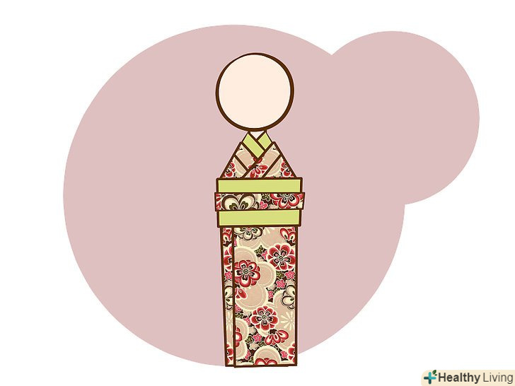 Приклейте пояс обі навколо тіла ляльки. оберніть смугу навколо центральної секції тіла, закриваючи стирчить картон. Приклейте її і дайте клею висохнути.- Зауважте, що кінці пояса Обі повинні бути заховані позаду ляльки.