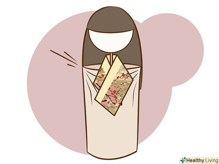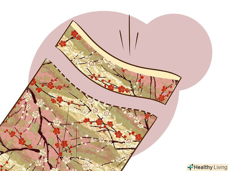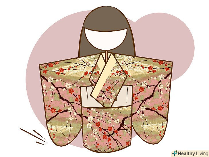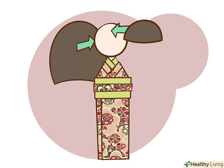 - Заворот правого краю повинен бути виконаний строго по вертикалі, щоб створювати пряме тіло. Обріжте будь-які надлишки коміра кімоно, що стирчать з-під останнього згину.
