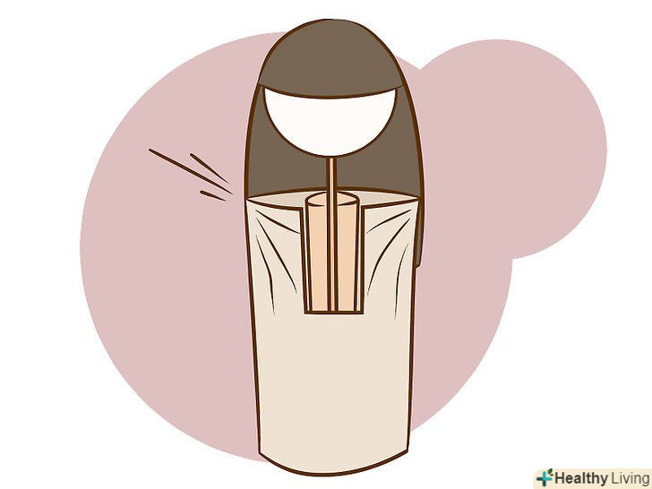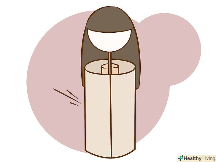 Сплющіть верхню частину картонної трубки. за допомогою великого і вказівного пальців розплющіть верхню частину трубки з обох сторін від прищіпки.- Ці сплющені ділянки будуть плечима ляльки. Вони повинні розташовуватися знизу з боків від голови, а не спереду і ззаду неї.