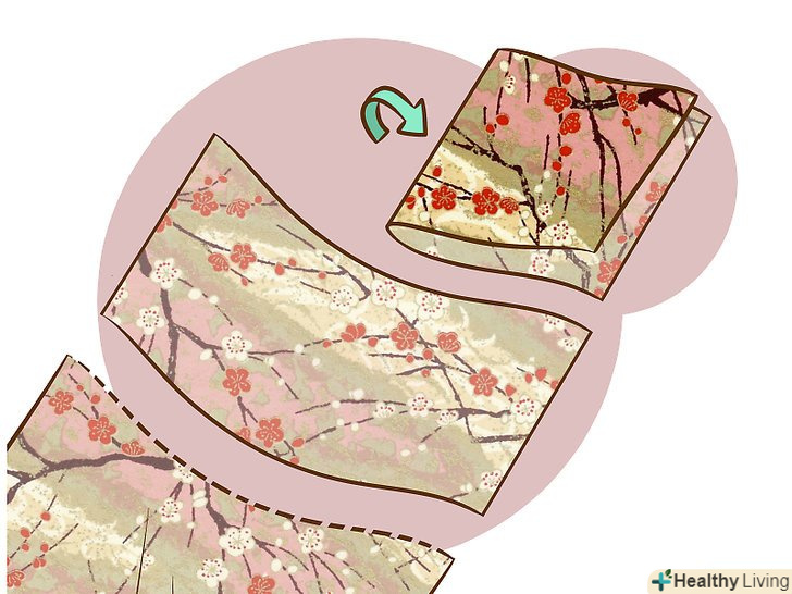 - Поверніть папір тильною стороною вгору. Загніть 1 см по короткому краю. Якщо візерунок на папері має верх і низ, зробити це необхідно у верхній частині листа.