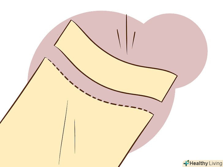 Приєднайте голову ляльки. Приклейте клеєм або скотчем одну сторону картонного кола голови до видимої частини смуги тіла ляльки.- Зауважте, що після даного кроку смужка тіла ляльки буде стирчати зовсім трохи. Ця стирчить частина буде грати роль шиї ляльки.