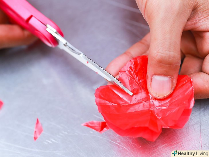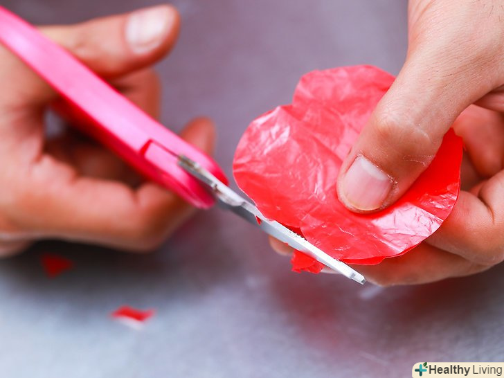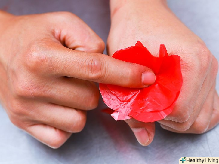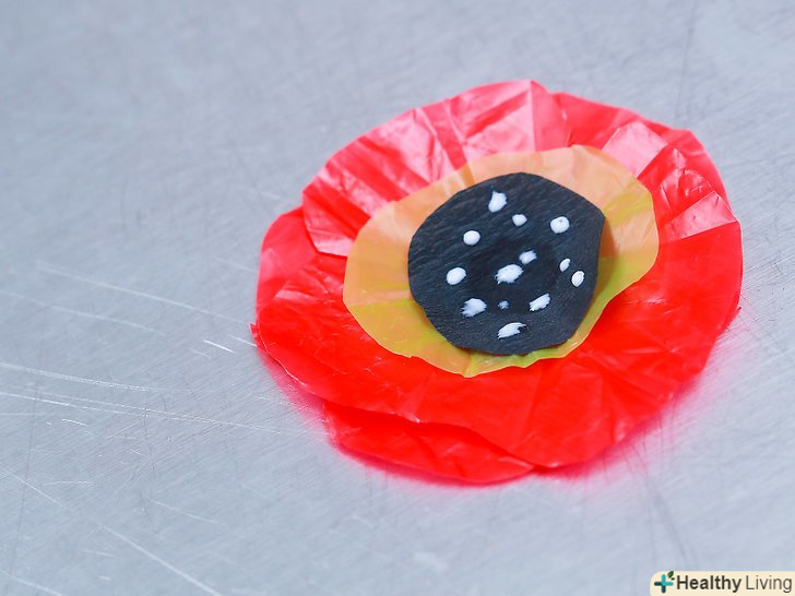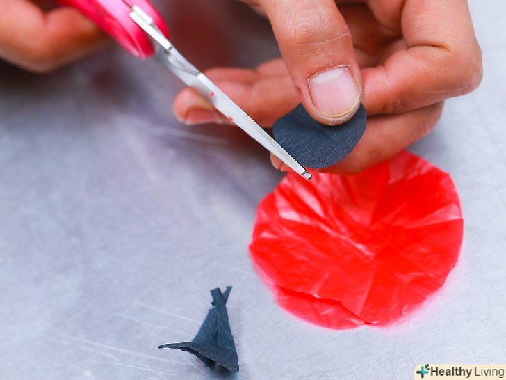 Приготуйте папір. Візьміть крепірованний, вощений або пергаміновий папір червоного кольору і виріжте з неї гуртки діаметром, приблизно відповідним передбачуваним розмірам ваших маків. Вирізавши кола, виконайте по три зубчастих вирізу на їх краях, позначивши тим самим пелюстки маків. Кожна квітка буде складатися з двох подібних кіл [1] .