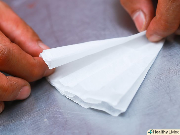 Складіть фільтр для кави, так щоб утворилося вісім шарів. для цього складіть круглий паперовий фільтр для кави тричі. Виконайте це з 7 фільтрами.