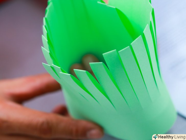 Зробіть трав'яну основу. закрутіть довгі нерозрізані краю паперу всередину, щоб лист був схожий на трубу неправильної форми, і склейте ці краї між собою.