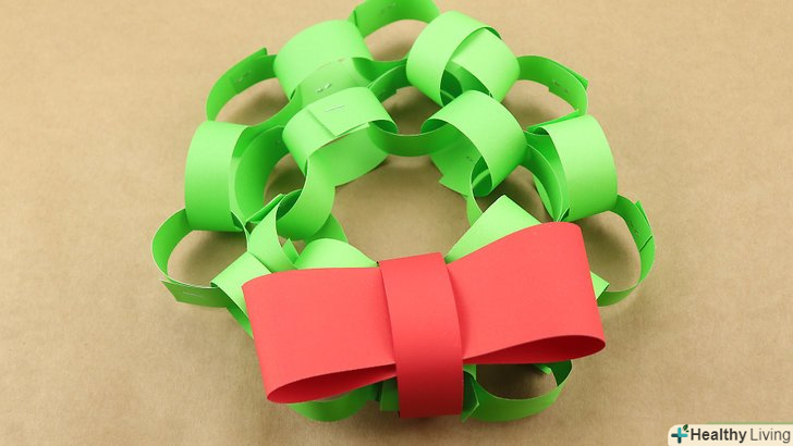 Зробіть "вінок". якщо зима і Різдво на підході, спробуйте зробити вінок з однієї або декількох паперових ланцюжків. Для базового дизайну використовуйте зелений картон, потім з'єднайте ланцюжок у велике кільце. Ви можете додати маленькі концентричні зелені кола, щоб заповнити вінок. Для більшого ефекту зробіть бант з червоного паперу або стрічки і прикріпіть його до передньої частини вінка.- Повісьте вінок на двері, стіну, паркан або на дерево. Паперовий вінок легкий і його буде просто закріпити за допомогою скотча або повісити на гачок.