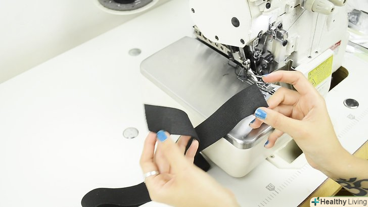 Зшийте гумку пояса разом. Зигзагом зшиваємо необроблені краю гумки разом, відступаючи від краю на 1,25 см.- Переконайтеся, що гумка буде комфортно охоплювати талію власника. Виміряйте талію власника. З отриманої довжини відніміть 7,6 см, це дасть гумці простір для розтягування.