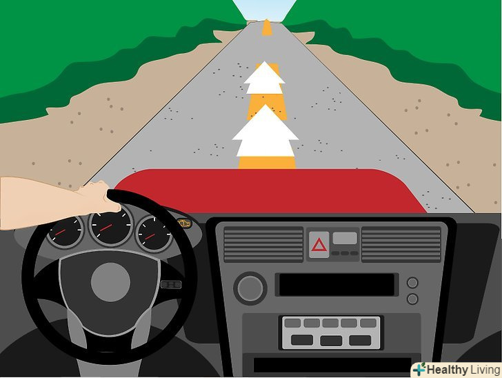 Докладіть максимум зусиль для того, щоб утримати автомобіль прямо.повороти або маневри на автомобілі з пробитим колесом дуже сильно погіршать зібраність вашого автомобіля. Якщо автомобіль веде в одну сторону, то вам необхідно повертати рульове колесо в протилежну сторону, для того, щоб утримувати пряму траєкторію руху автомобіля. Це дуже важливий момент, інакше ваш автомобіль почне бічне ковзання на дорозі або навіть вилетить на смугу зустрічного руху.