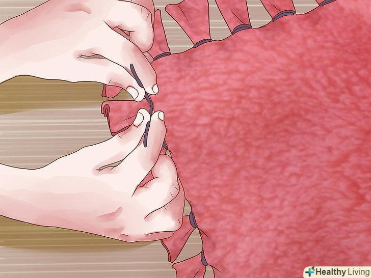 Завершіть роботу над ковдрою, зв'язавши бахрому між собою.- Візьміть перший елемент бахроми обох шарів ковдри.