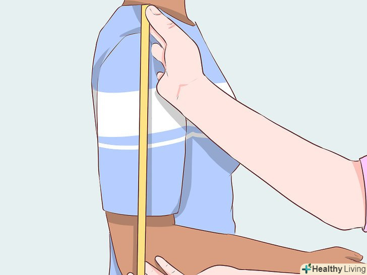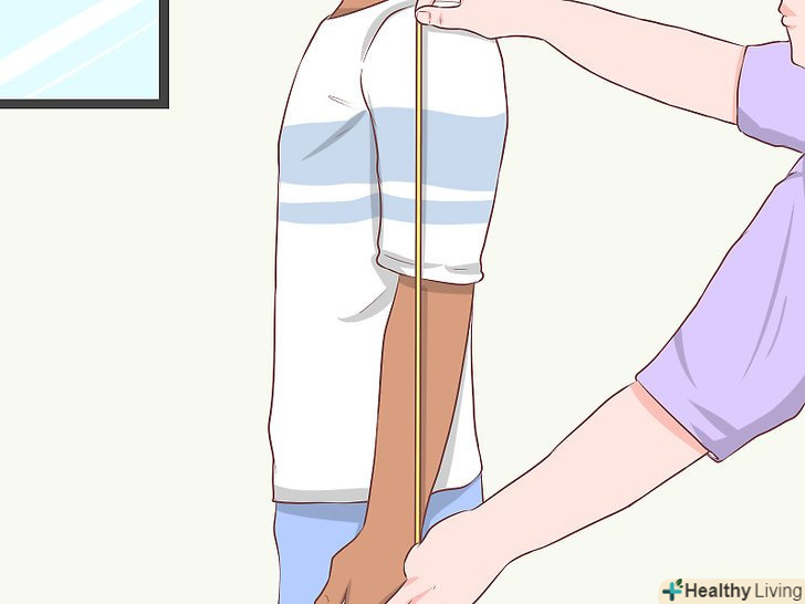 Виміряйте довжину рукава. щоб визначити довжину рукава сорочки або піджака, необхідно виміряти відстань від плечового суглоба до зап'ястя.- Для сорочки довжина рукава визначається по зігнутому ліктю, щоб врахувати рухи тіла.
