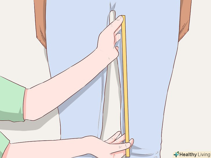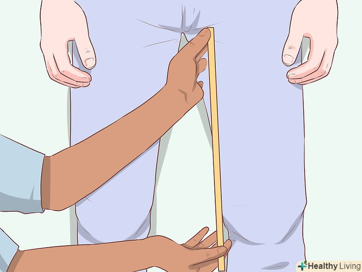 Дізнайтеся довжину крокового шва. щоб визначити довжину крокового шва брюк, необхідно виміряти відстань по внутрішній стороні ноги від промежини до щиколотки. Нога при цьому повинна залишатися прямою.- Найкраще попросити кого-небудь допомогти Вам зняти цю мірку. Якщо у вас немає помічника, Ви можете визначити довжину крокового шва за іншими наявними у вас штанів, які добре на вас сидять. [7]