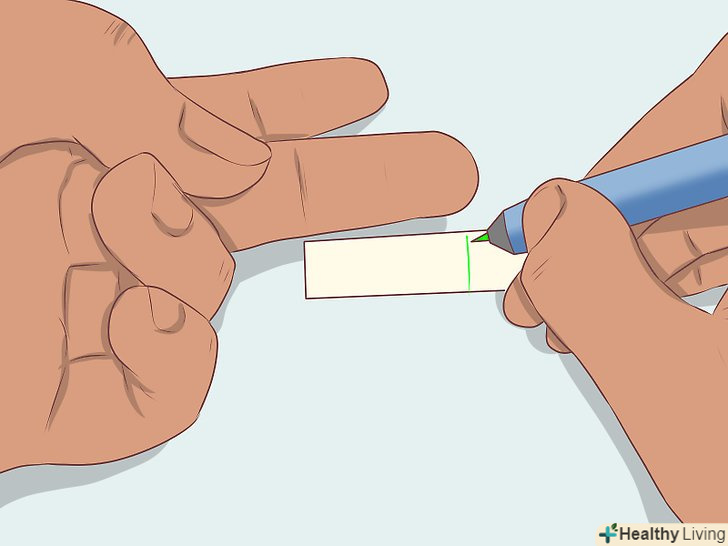 - Якщо у вас немає лінійки, ви спокійно можете виконати виміри стандартними предметами, такими як папір для принтера або дрібна купюра. Також можна виконати приблизні виміри за допомогою долоні і руки. Довжина третіх фаланг пальців (кінчиків пальців) становить близько 2,5 см, а ширина долоні без урахування великого пальця – приблизно 10 см.однак, ці параметри досить індивідуальні і варіюються у різних людей. [2]