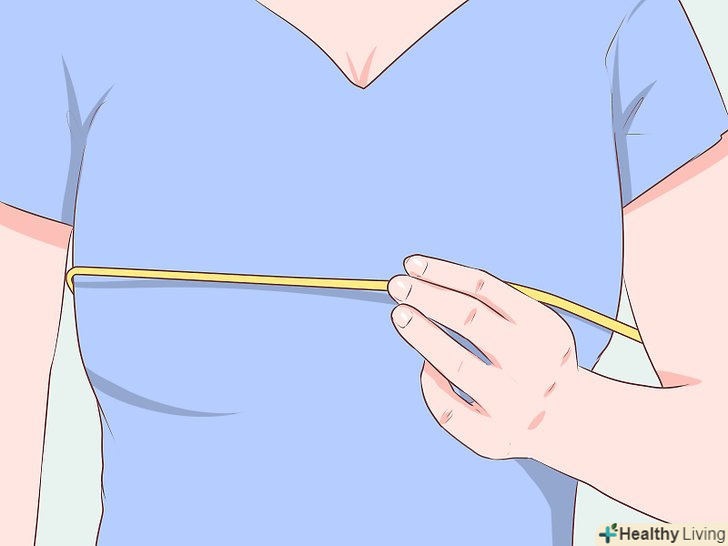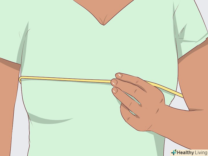Виміряйте обхват грудей. щоб визначити свій обхват грудей або обхват грудей іншої жінки, необхідно провести вимірювальний матеріал навколо тіла по лопатках, під пахвами і по самій виступаючої частини грудей. [3]- Під час зняття мірки не стягуйте вимірювальний матеріал на грудях занадто сильно.
