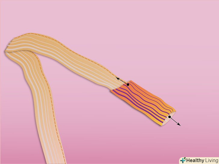 Оберніть тканинне кільце навколо гумки, складаючи тканину виворітного стороною всередину, а обличчям назовні.