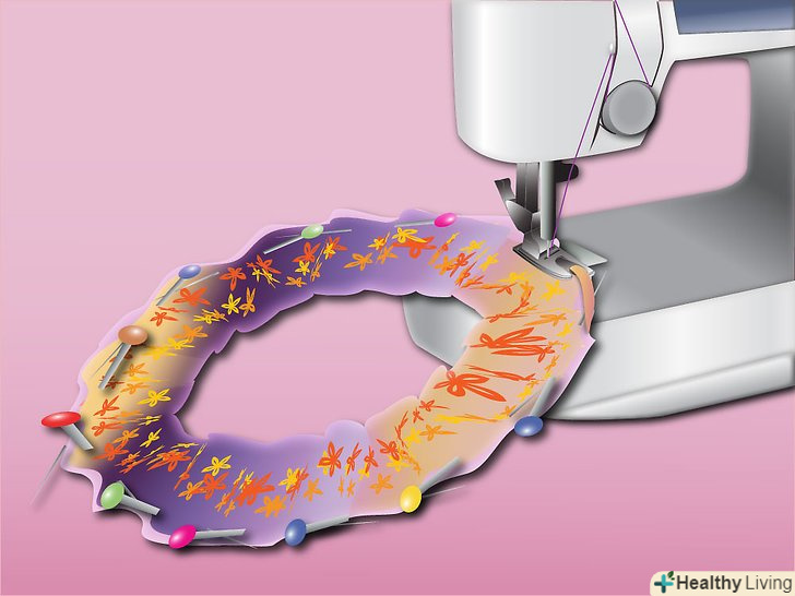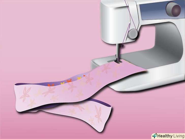 На швейній машині з підвертає лапкою прошийте шов з підворіттям, щоб заховати необроблені краю тканини.- Зауваження: Це також можна зробити вручну або ж попередньо підвернути зрізи всередину і прокласти простий шов поверху. Головне заховати при зшиванні необроблені зрізи.