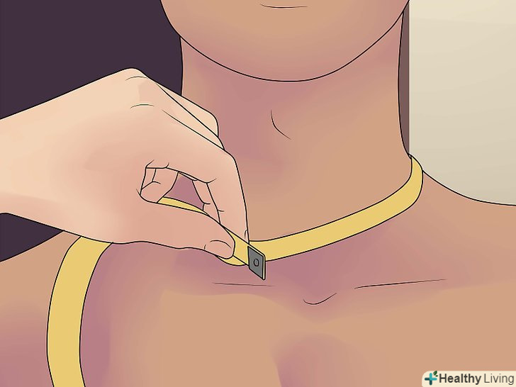 Виміряйте обхват шиї. оберніть сантиметрову стрічку навколо шиї і запишіть результати виміру. Стрічка повинна проходити приблизно вище місця з'єднання шиї з плечима, трохи вище ключиці, а не навколо самого горла. Тим самим ви гарантовано отримаєте правильний розмір сорочки.