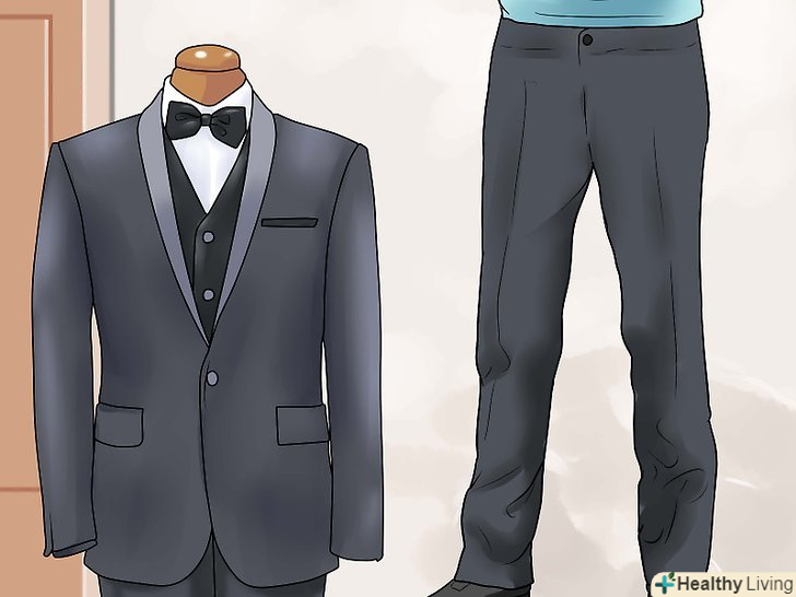 - Вимірюючи об'єм талії, грудей і шиї, покладіть два пальці між тілом і мірною стрічкою. Цей додатковий простір зробить ваш смокінг більш комфортним, а не занадто тісним.