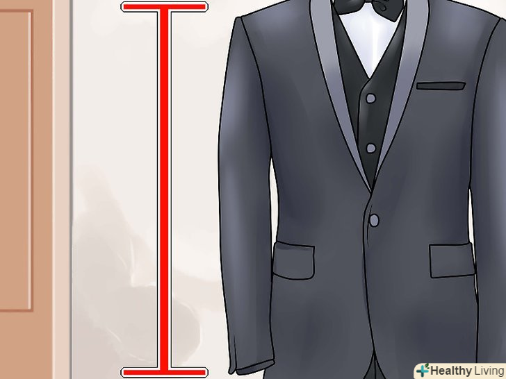 - При розрахунку вимірів, не натягуйте стрічку занадто туго. Замість цього, переконайтеся, що вона повно охоплює вимірювану частину (частини) тіла. Натягуючи стрічку занадто туго, ви тим самим зробите свій смокінг надто тісним.