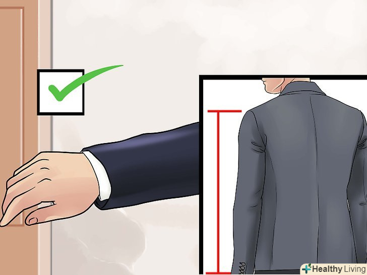 Переконайтеся, щоб піджак не був вузький в проймах. під час примірки піджака, переконайтеся, що пройми були досить вільними, щоб забезпечити вам повний діапазон рухів без ризику порвати внутрішню обшивку при різкому русі. Якщо вам тисне в області пахв, піджак необхідно переробити або вибрати інший.