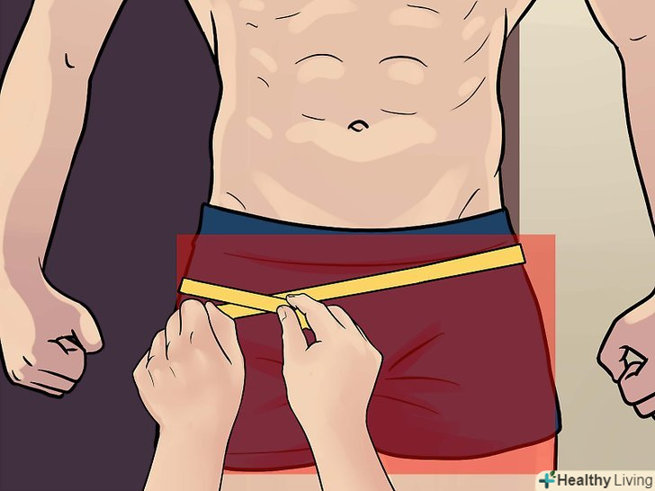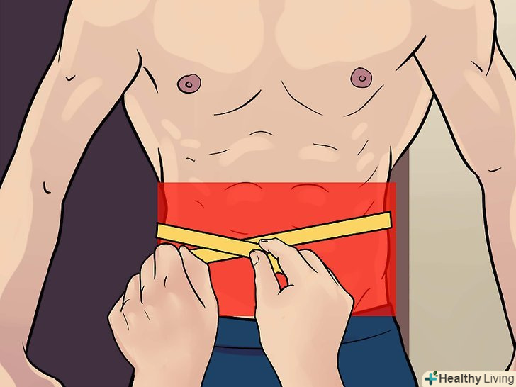 Виміряйте об'єм талії. через те, що штани костюма сидять на талії вище, ніж знаходяться навколо стегон джинси або штани, вам потрібно зняти інші мірки, а не використовувати довжину брюк, як зазвичай. Візьміть мірну стрічку і виміряйте окружність вище стегон і окружність через пупок, щоб визначити точний розмір талії для смокінгу.