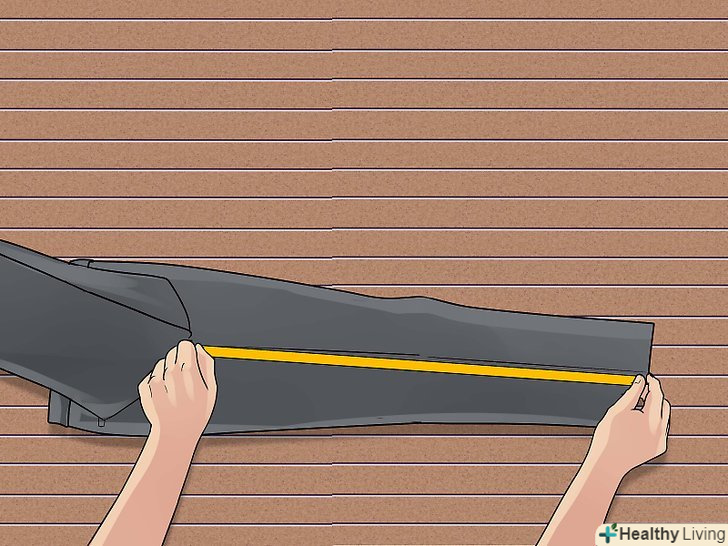 Виміряйте внутрішній шов. його найпростіше виміряти за наявними штанів, ніж на собі. Складіть зручну пару брюк вдвічі по вертикалі, щоб шов був рівним. Складіть одну штанину вгору, щоб вона не заважала, а потім виміряйте відстань від шва-розвилки до нижньої манжети брюк. [1]- Залежно від кравця або прокатного салону, деякі магазини попросять вас вказати значення зовнішнього і внутрішнього швів, в той час як іншим знадобитися лише одна з мірок. Дізнайтеся, яка саме мірка їм потрібна, щоб не повідомити їм неправильні цифри.