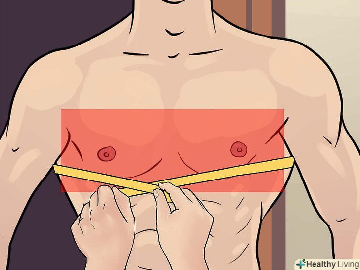 Виміряйте обхват грудей. підніміть руки, розставте їх в сторони і оберніть сантиметрову стрічку навколо лопаток, розташувавши її під пахвами і навколо найширшої частини грудей. Опустіть руки і зніміть показання. Стрічка повинна бути натягнутою, але не дуже сильно.